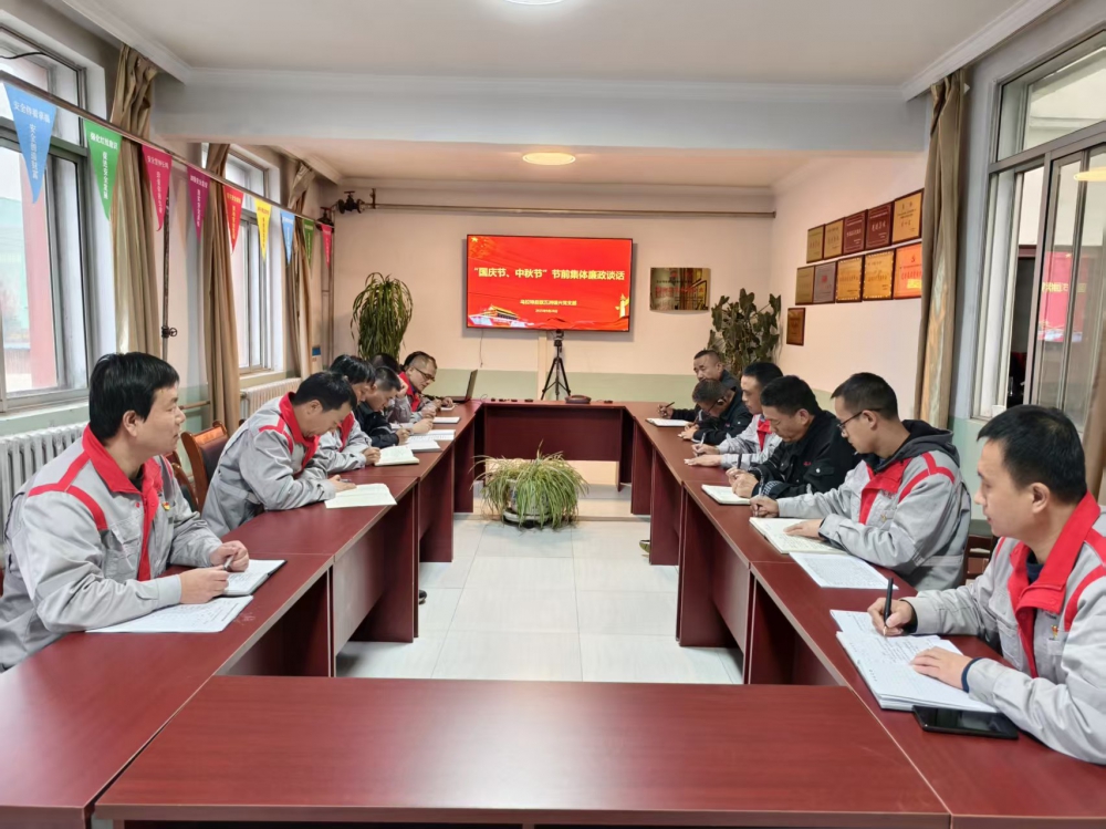 為進(jìn)一步加強(qiáng)黨風(fēng)廉政建設(shè),營(yíng)造風(fēng)清氣正的節(jié)日氛圍,9月28日,內(nèi)蒙項(xiàng)目部組織開展中秋、國(guó)慶雙節(jié)前集體廉政談話會(huì)。會(huì)議由公司黨支部副書記、紀(jì)檢員張育波主持,公司黨支部副書記、經(jīng)理史小亮作總結(jié)講話,公司領(lǐng)導(dǎo)班子成員及各部室負(fù)責(zé)人參加會(huì)議。